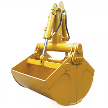 產(chǎn)品特點:配兩條油缸,通過雙液壓油缸直接開合抓斗,下挖力強,設(shè)有同步連桿保證左右斗同步。